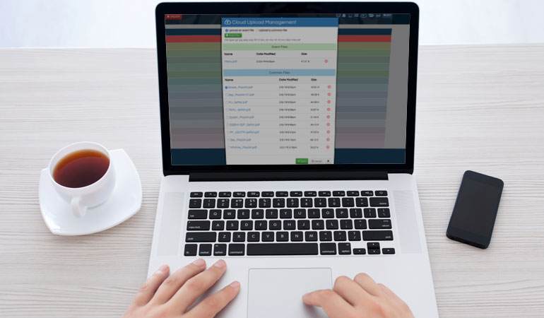 Need to provide documents or files for an event? Upload files by event or assign them from your library. (NOTE: optional service)